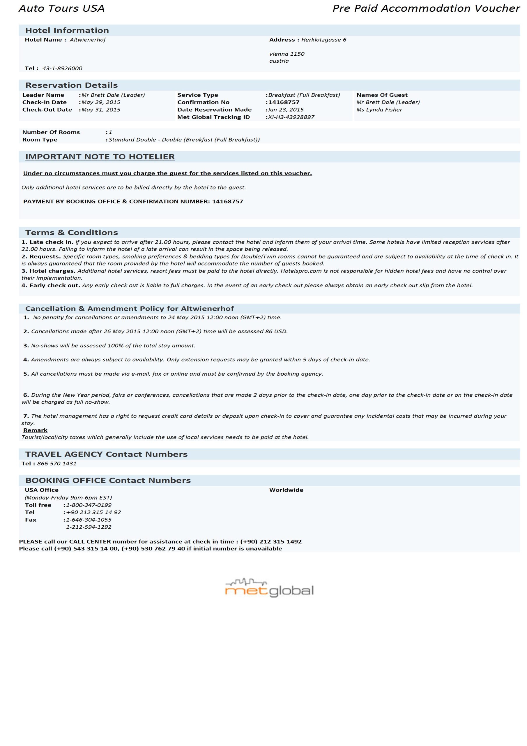 2015 - Europe and UK Day 21 – 29 May 2015 – Accommodation 29/05/20151 min readAdd comment Altwienerhof – Vienna